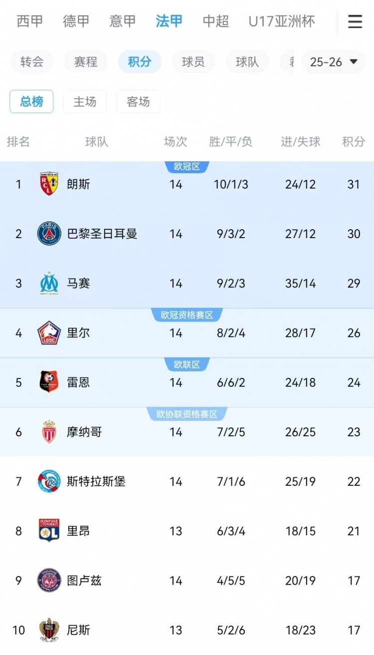 12月1日讯 法甲第14轮已经完赛。南野拓实打进制胜球,巴黎0-1负于摩纳哥;托万双响,朗斯2-1击败昂热后超越巴黎登顶法甲榜首。